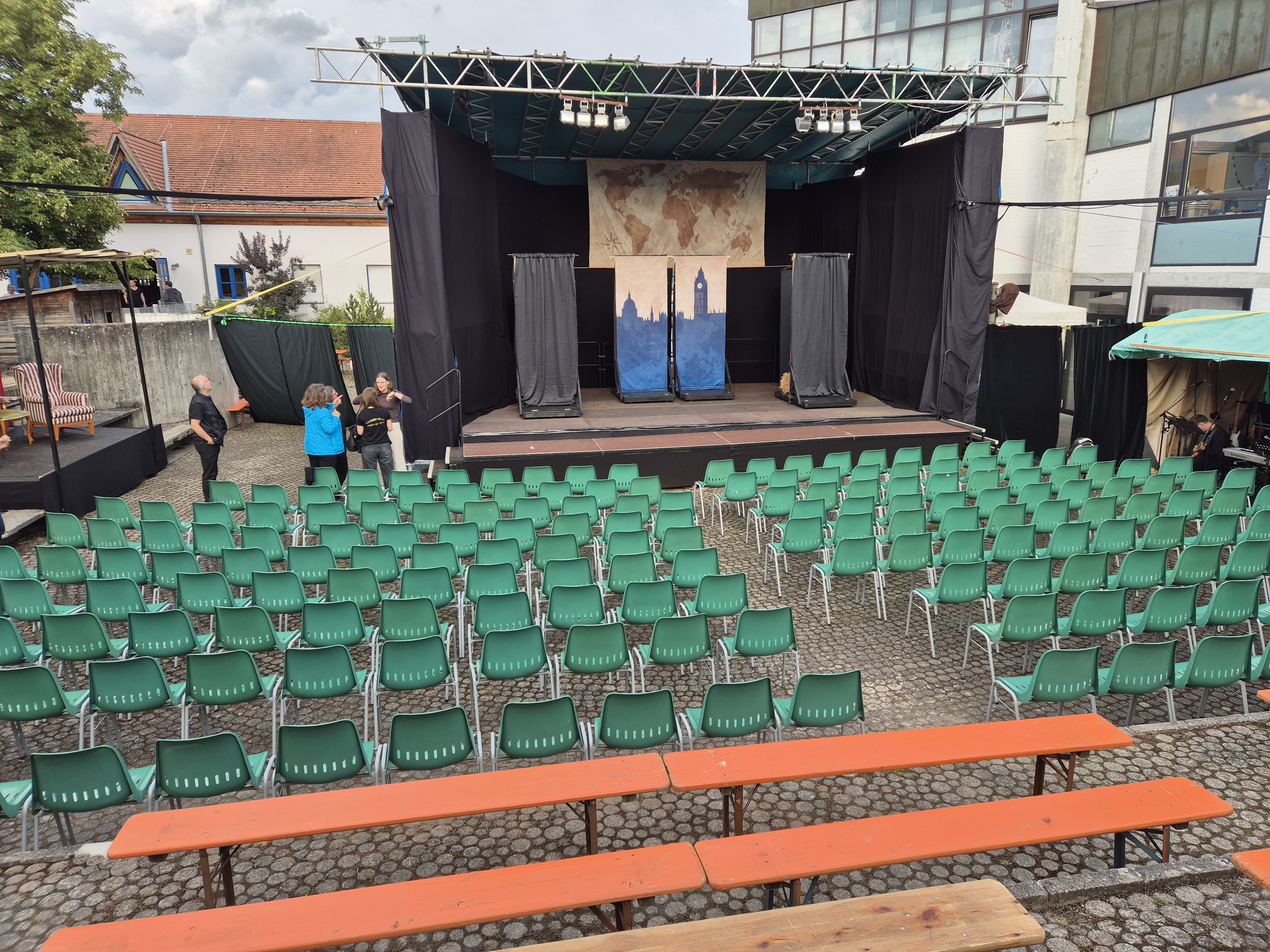 spielen wir auf unserer Freilichtbühne im Hof der St. Markus Kirche in Oberasbach: